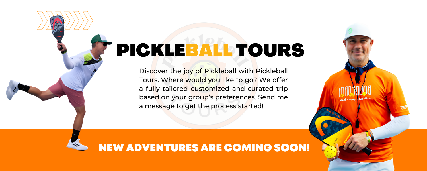 My aim with Pickleball Tours is to create experiences that are fully customized and curated around you. The customer is always right, right? So then, let’s put the pickleball in your court and allow you to have the control.